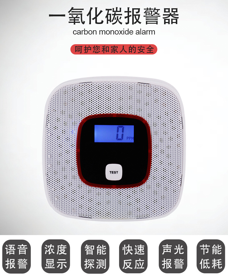 当探测器探测到一氧碳气体超过30PPM时(根据选择的标准,EN,),就会报警,同时语音提示“请注意,一氧化碳气体发生泄漏,请打开门窗”,并鸣响警号。此时,应该立即关闭阀门,打开门窗,使室内空气流通,并通知相关专业人员处理。