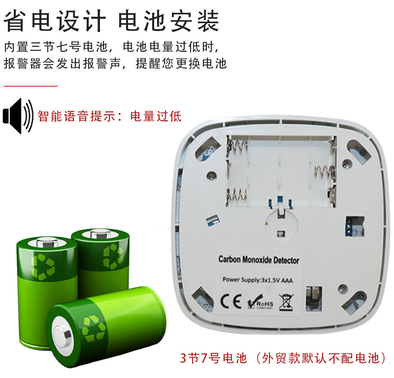 2.本产品为一氧化碳探测器,不能用于探测可燃气体(煤气,天然气,液化石油气等)